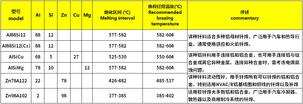適用軟釬焊大多數(shù)鋁和鋁合金。廣泛用于汽車?yán)淠鳌⑸崞饕约吧逃弥评湎到y(tǒng)的釬焊。